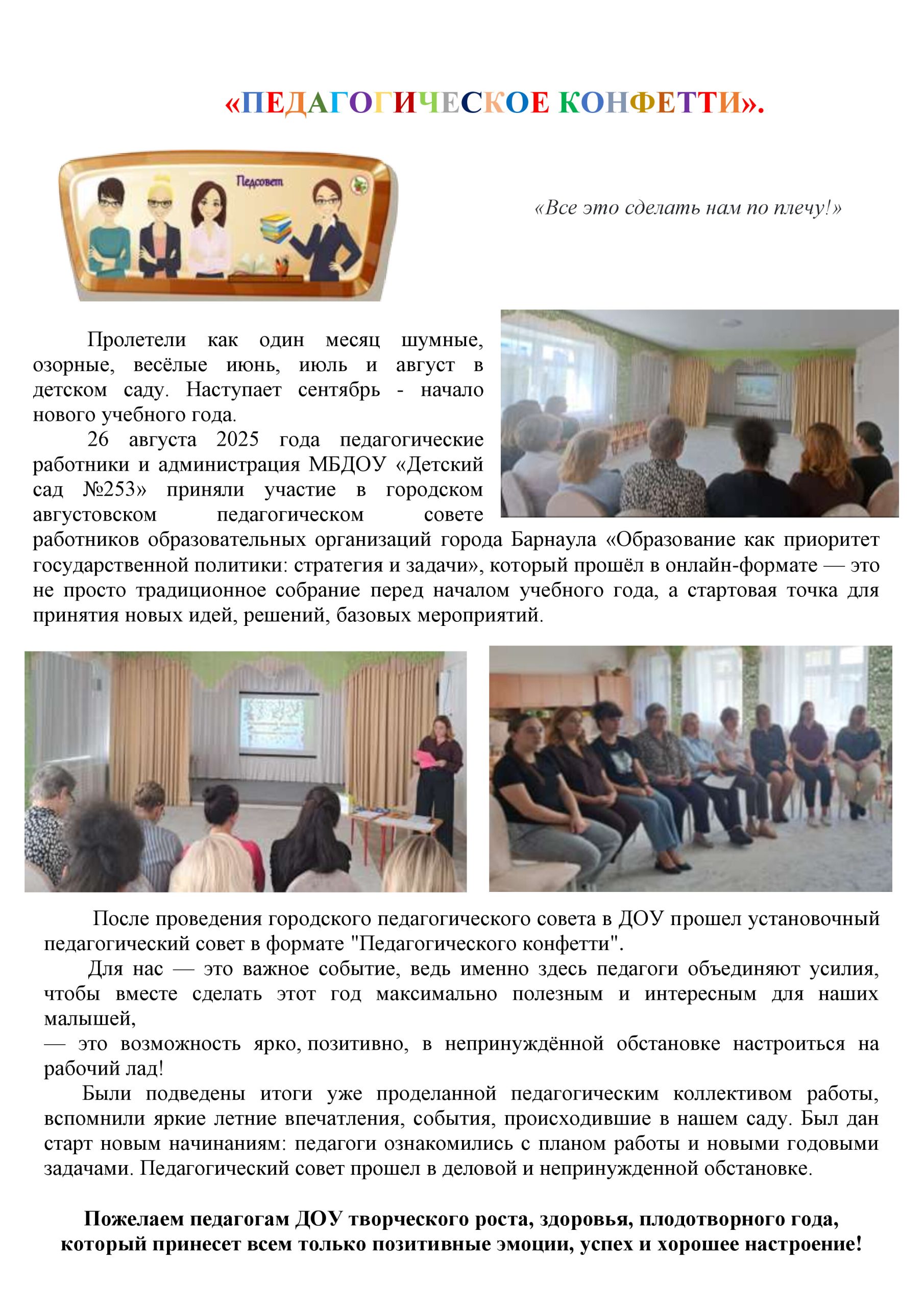 «ПЕДАГОГИЧЕСКОЕ КОНФЕТТИ» sait4 сентября, 2025 Новости Комментариев нет ← День флага УЧЕБНО-ТРЕНИРОВОЧНОЕ МЕРОПРИЯТИЕ ПО ЭВАКУАЦИИ ВОСПИТАННИКОВ И СОТРУДНИКОВ ДОУ → Добавить комментарий Отменить ответВаш адрес email не будет опубликован. Обязательные поля помечены *Комментарий Имя * Email * Сайт Сохранить моё имя, email и адрес сайта в этом браузере для последующих моих комментариев. Δ Этот сайт использует Akismet для борьбы со спамом. Узнайте, как обрабатываются ваши данные комментариев.