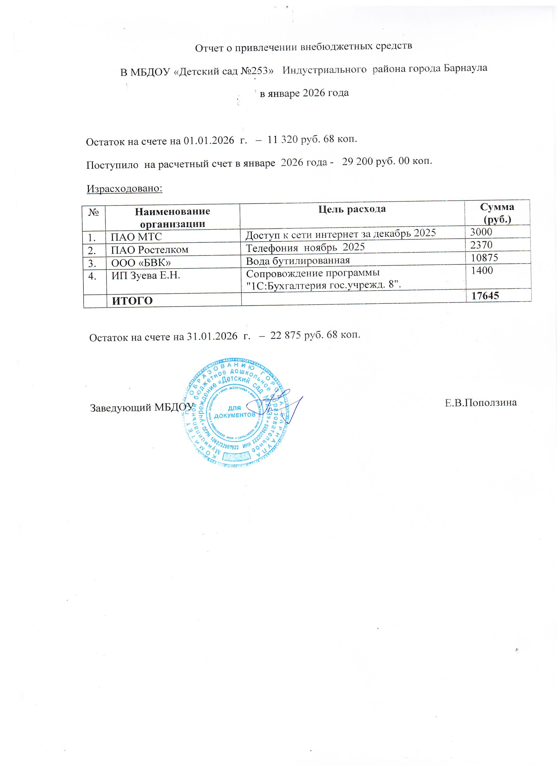 Отчет о привлечении внебюджетных средств в январе 2026 года
