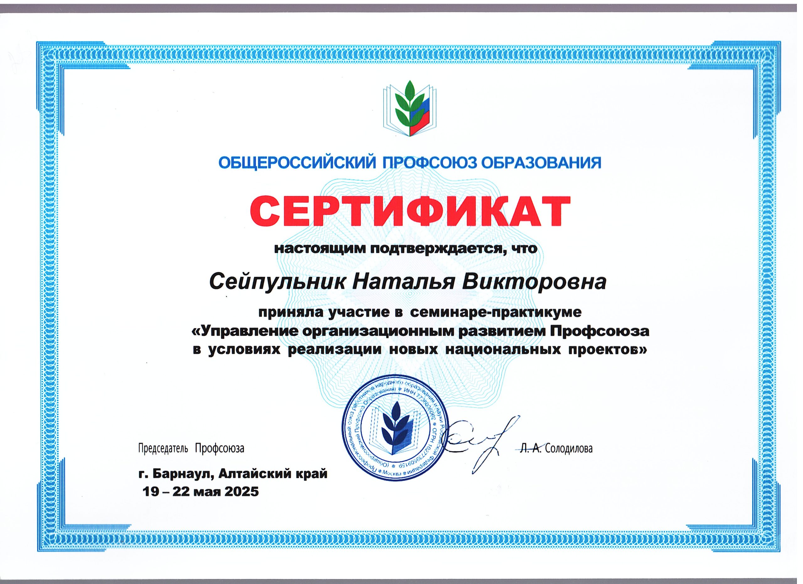 Председатель: Сейпульник Наталья Викторовна