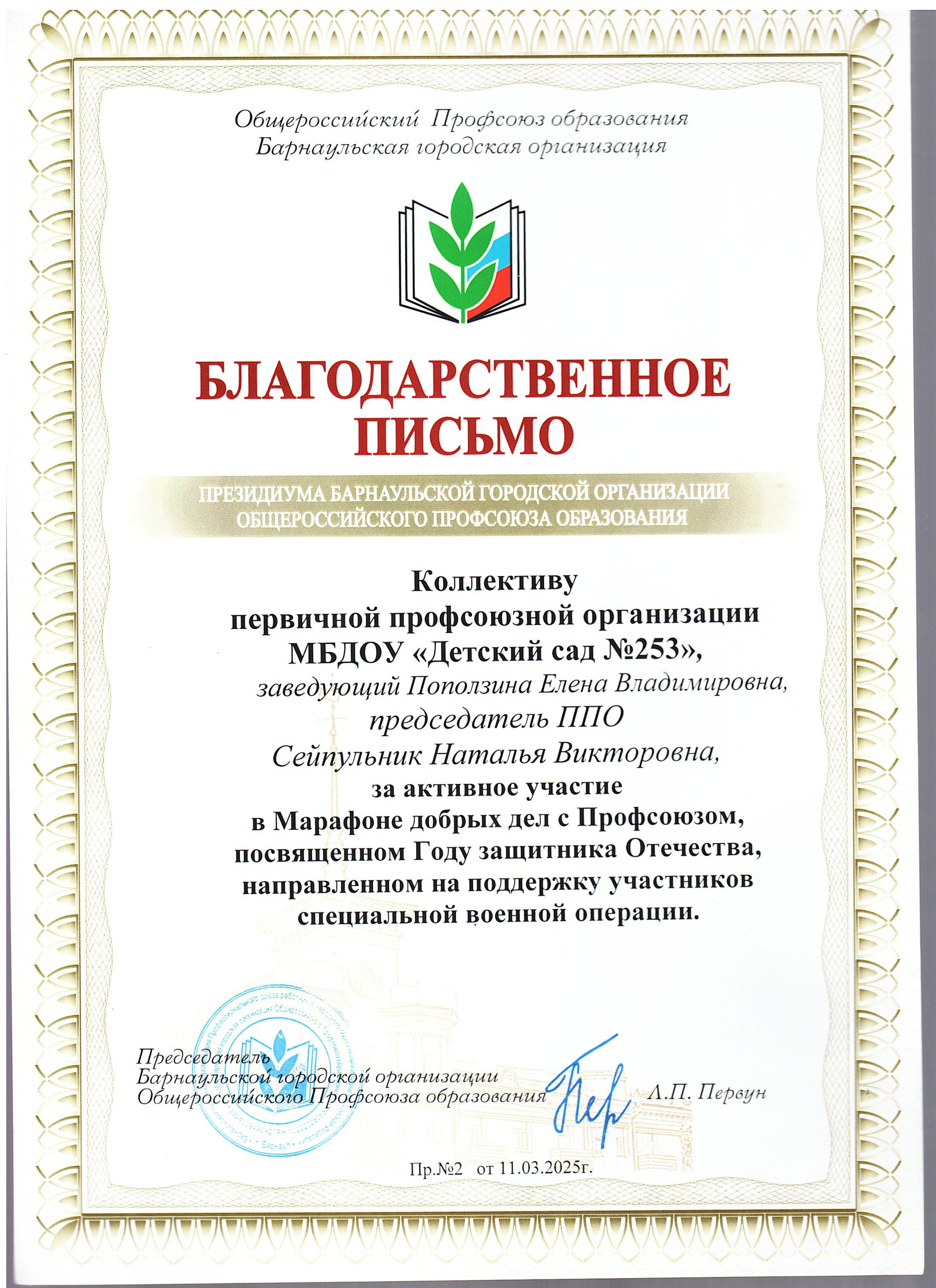 Первичная профсоюзная организация «Детский сад №253»